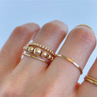 Esta argolla de Oro Goldfilled y diseño martillado ultra delgado es increíblemente versátil. Se ve preciosa usándola para enmarcar tus anillos elasticados favoritos o con una sola para resaltarlos