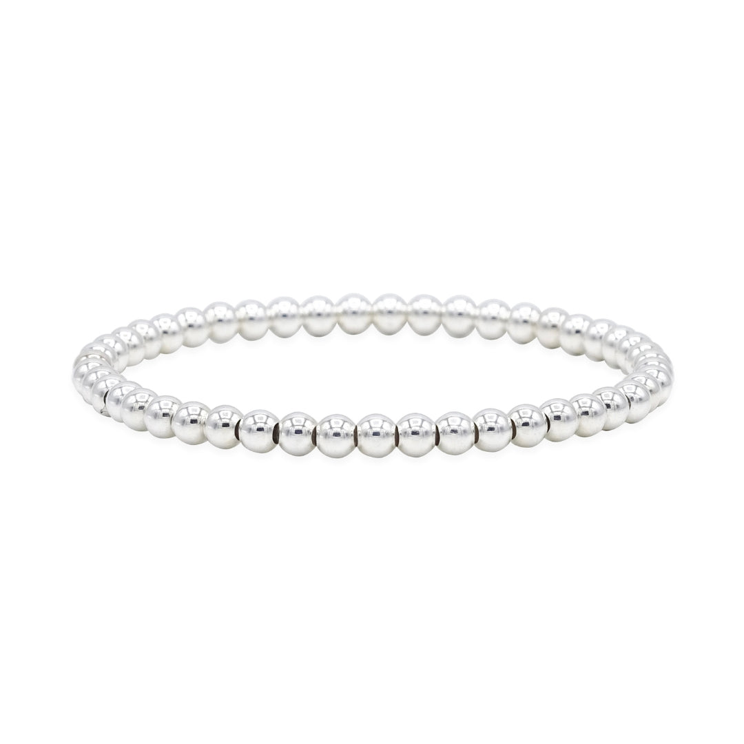 Esta pulsera elasticada combina resistencia y estilo con elegancia. Con bolitas de plata 925 de 4 mm, ofrece un brillo sutil y sofisticado. Su diseño elasticado garantiza un ajuste cómodo y duradero, perfecto para el uso diario.