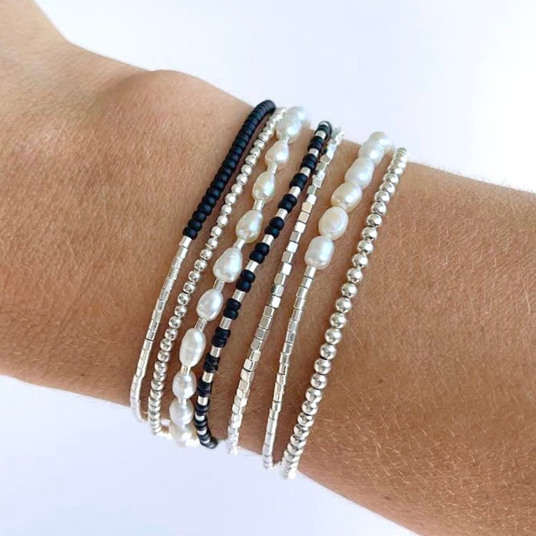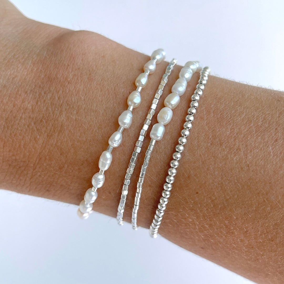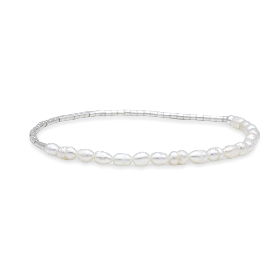 Pulsera Mostacillas de Plata y Mitad Perlas de Río