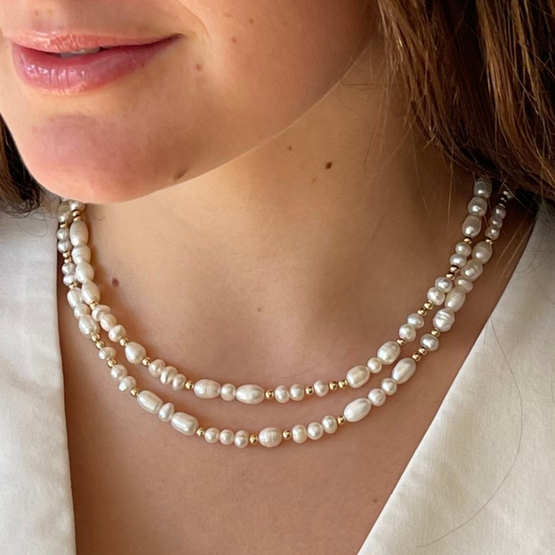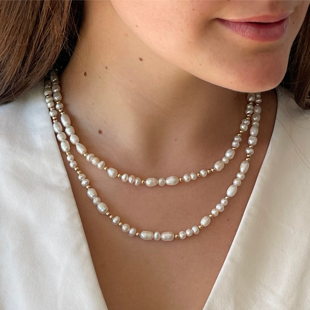 Una elección elegante y especial. Nuestro collar de perlas de rio y bolitas de Oro Goldfilled, es la definición perfecta de una combinación armoniosa, que eleva tus looks con mucha personalidad! Su largo de 1 mt te permite usarlo doble, como un collar largo, pulsera, etc... tienes muchas opciones para llevaro en tu día a día o en ocasiones especiales!