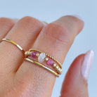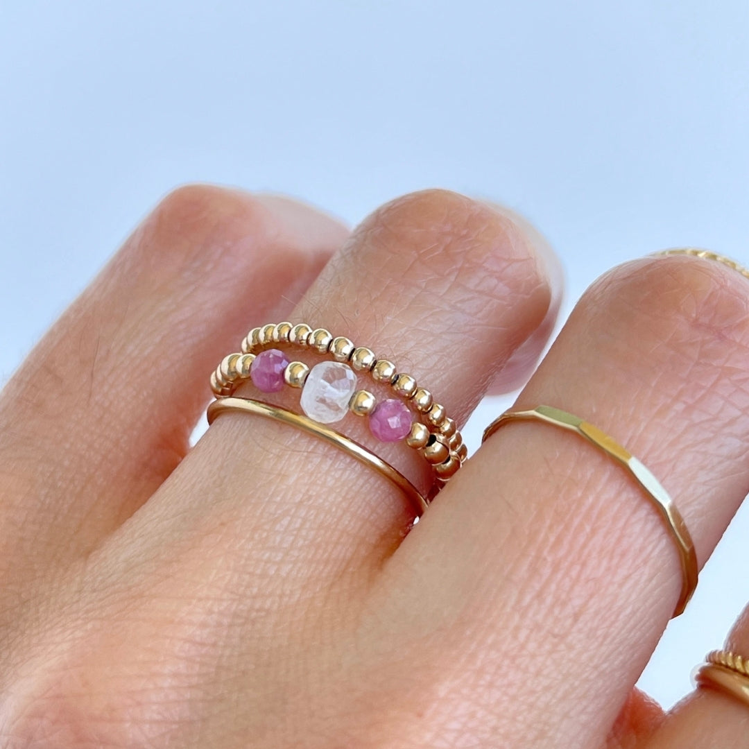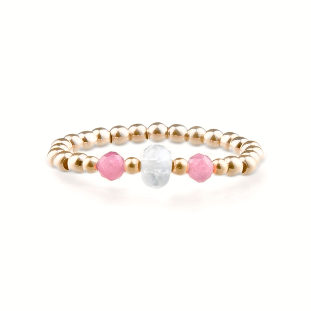 Anillo De Bolitas De Oro Goldfilled Con Turmalina Rosa Y Piedra Luna